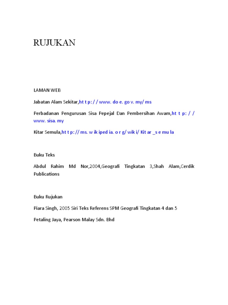 ١٨ جمادى الأولى ١٤٤١ هـ. Kerja Lapangan Geografi Tingkatan 2 80 RUJUKAN 81 Buku Chong Mui Sen Azizan Abu Samah 2003. Kerja kursus sejarah pmr cara menulis bahagian rujukan 1.
